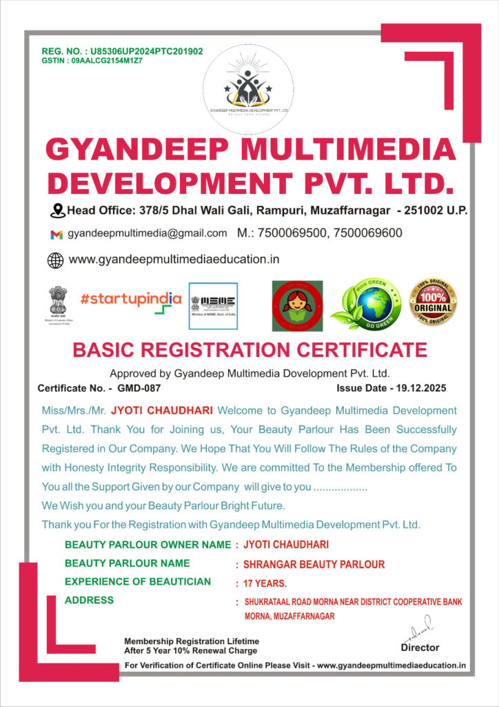 Parlour Name- Shrangar beauty parlour Address – Shukrataal road morna Near District Cooperative bank Morna , Muzaffarnagar