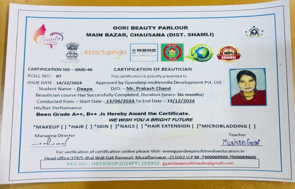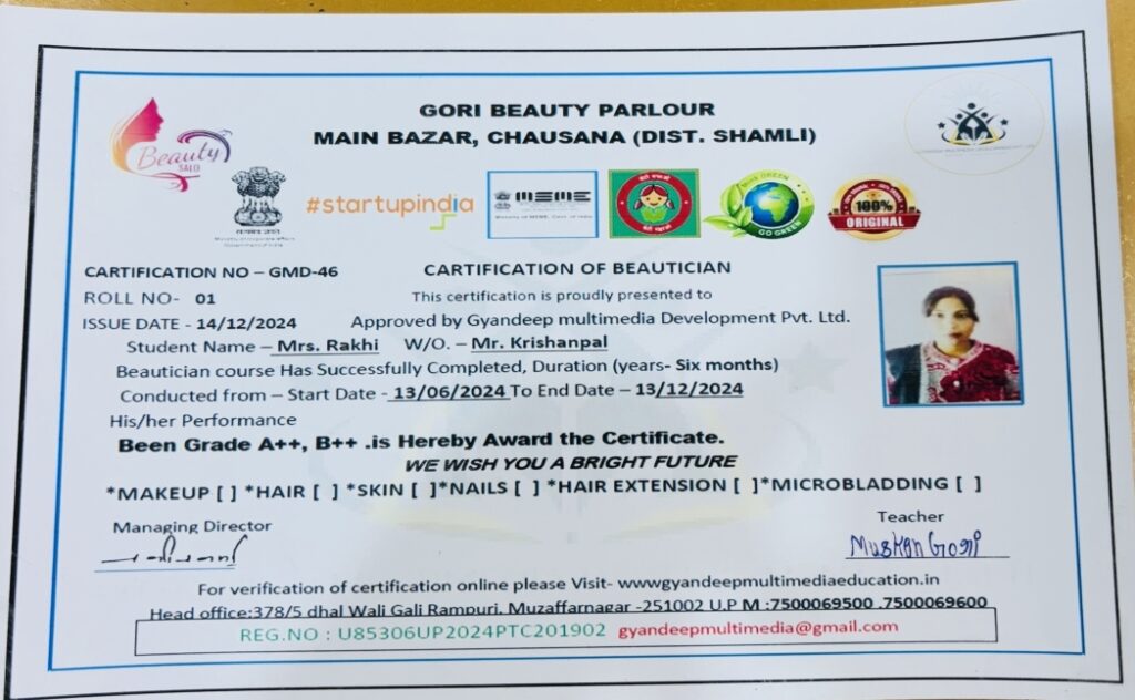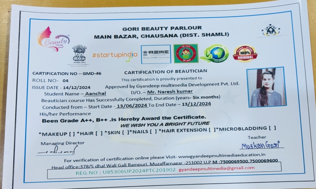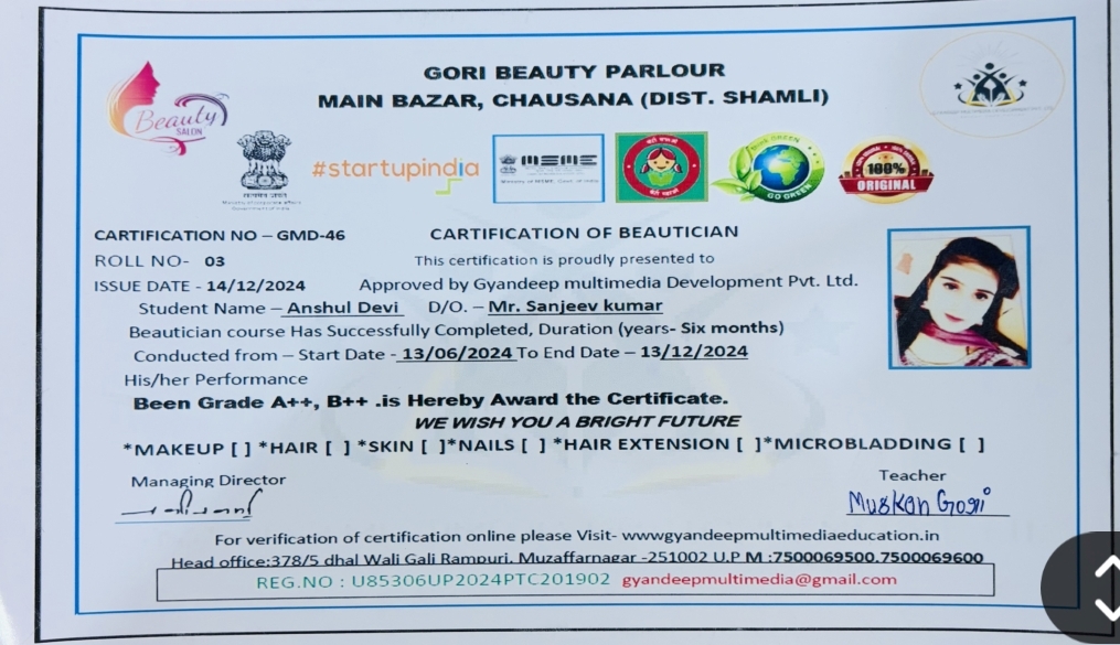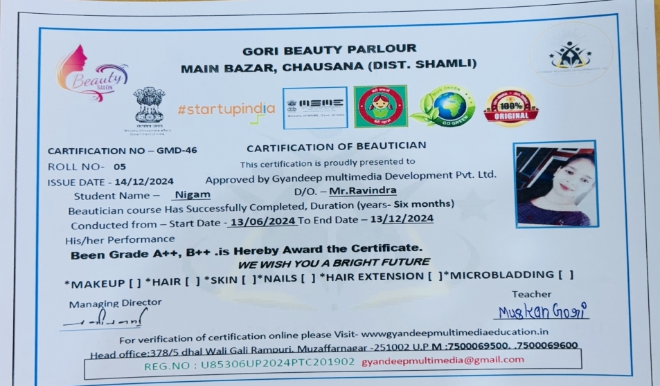 Parlour Name – Pari Beauty Parlour Address – In Front Of Petrol Pump , Chhapar , Muzaffarnagar (U.P)