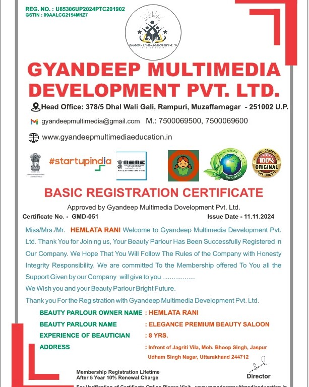 Parlour Name – Elegance Premium Beauty Saloon
