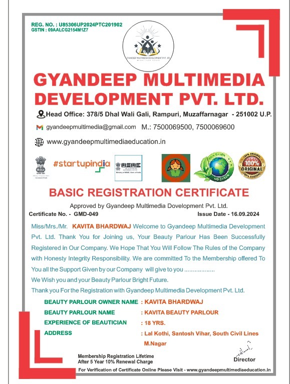 Beautician Name – Kavita BhardwajBy Gyandeep / March 13, 2025 Parlour Name -Kavita Beauty Parlour Address- Lal Kothi , Santosh Vihar ,South Civil lines Muzaffarnagar (U.P.)
