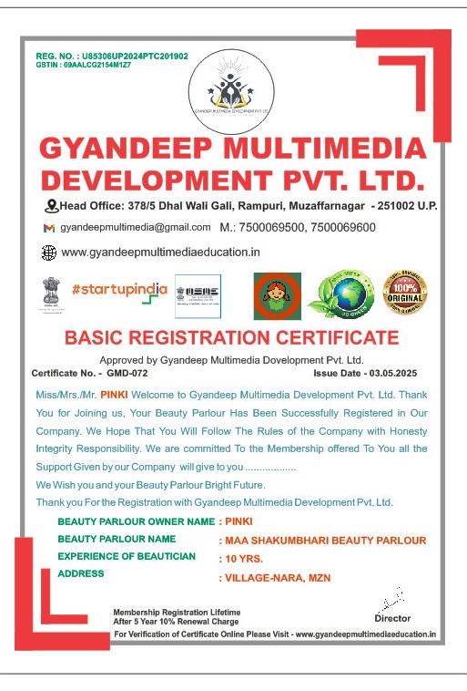 Beautician Name -PinkiBy Gyandeep / May 8, 2025 Parlour name – Maa Shakumbhari Beauty Parlour Address – Village – Nara , Muzaffarnagar Experience -10 Years.