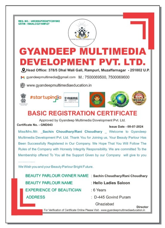 Beauty Parlour Owner Name – Sachin Choudhary/Rani ChoudharyBy Gyandeep / March 13, 2025 Parlour Name – Hello Ladies Saloon Address – D-445 Govind Puram,Ghazibad (U.P.)