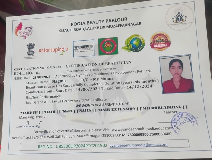 Parlour Name- Pooja Beauty  parlour  (Sisauli Road,Lalukhedi ,Muzaffarnagar)
