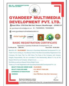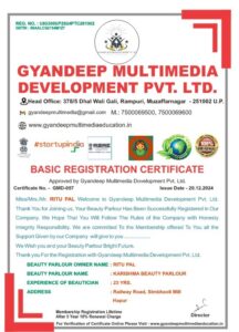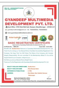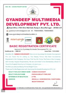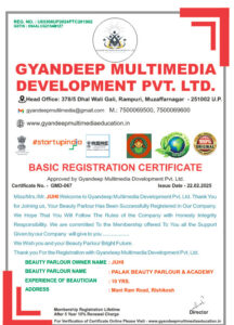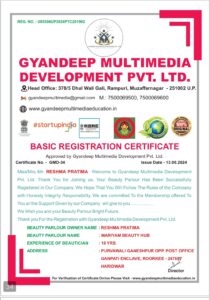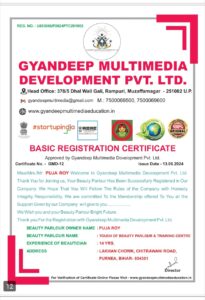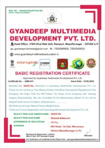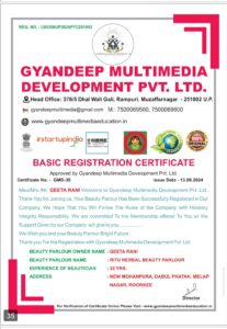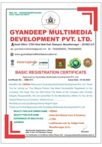 Parlour name – Nidhi Beauty Parlour Address- Gupta Market, Jail Fatak, Police line Muzaffarnagar (U.P)