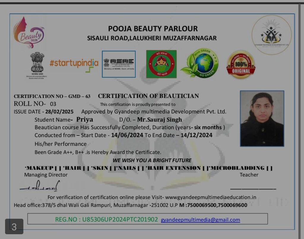 Parlour Name- Pooja Beauty  parlour  (Sisauli Road,Lalukhedi ,Muzaffarnagar)
