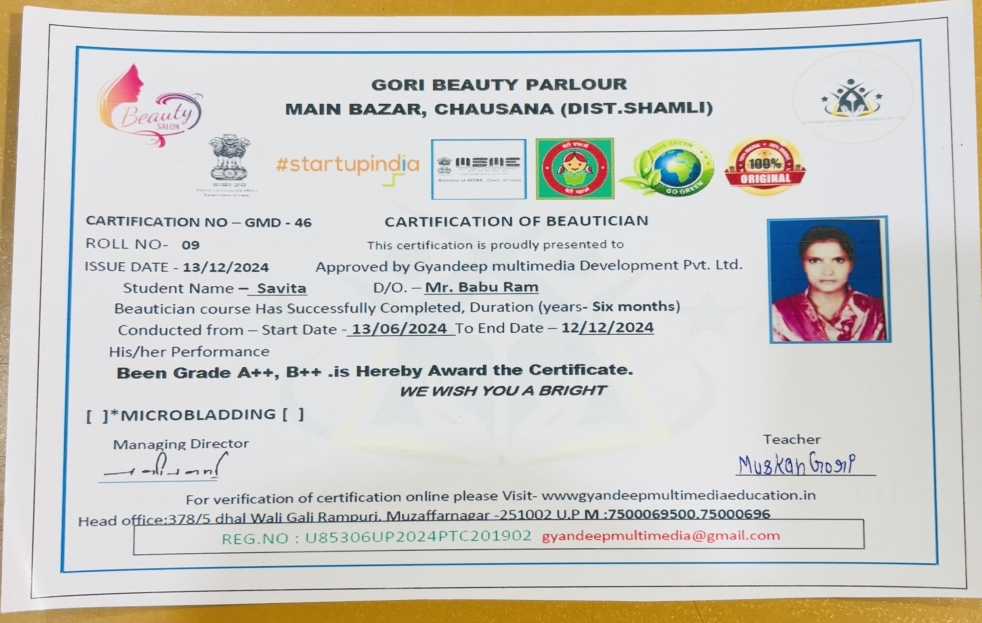 Parlour Name- Gori Beauty Parlour Main Bazar , Chausana ( shamli )